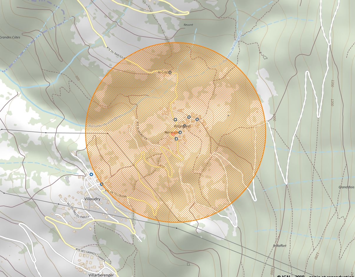 Les périmètres de protection des Monuments Historique sur Grand-Aigueblanche :